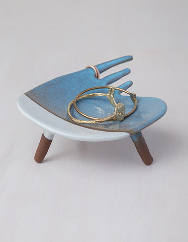 Ceramic Aqua Wing Tripod Jewelry Dish